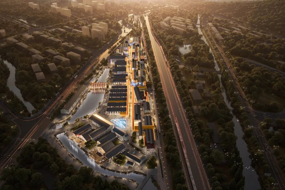 該項目位于蕭山區(qū)老城中心的城廂街道與北干街道的蕭山西站舊址,歷史文化積淀濃厚,總建筑面積約為4.6萬平方米。項目引入業(yè)態(tài)規(guī)劃補齊地塊周邊功能短板,以這組稀缺工業(yè)遺存為原點,構建物流方式演變的線性時空巡展軸——從站臺與碼頭的舊日聯(lián)運圖景,到現(xiàn)代物流高效交互的立體網(wǎng)絡,最終通向未來智慧互聯(lián)的數(shù)字場景。